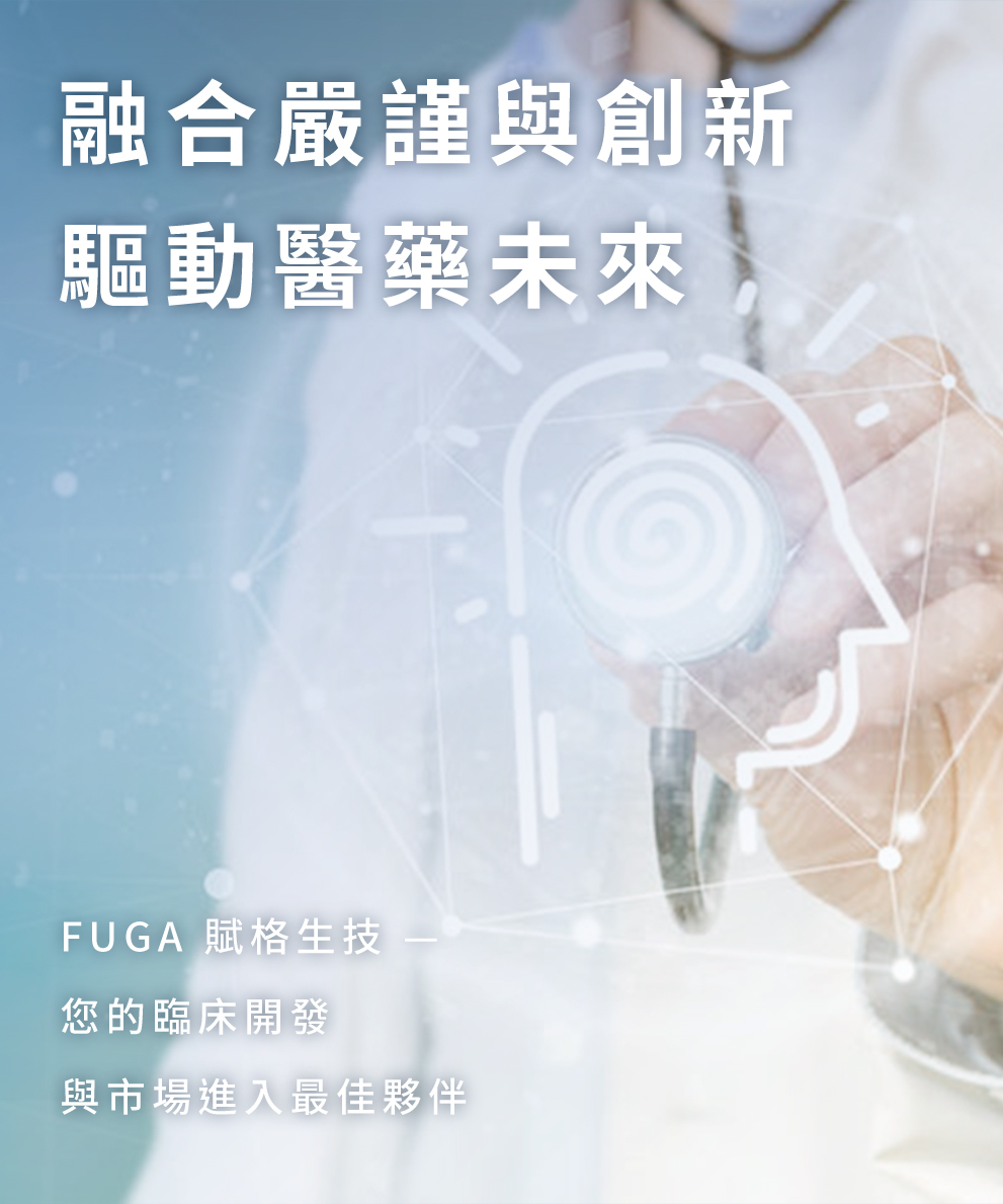 成立於 2002 年,賦格生物科技以臨床研究整合服務為核心,致力協助生技、醫療器材、細胞與基因療法等產業進入市場。我們的專業團隊橫跨法規、研究、設計與市場。